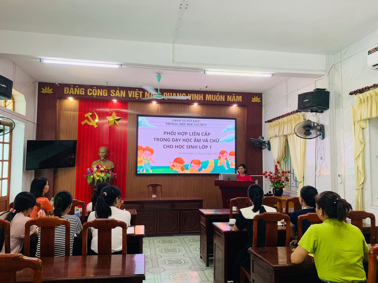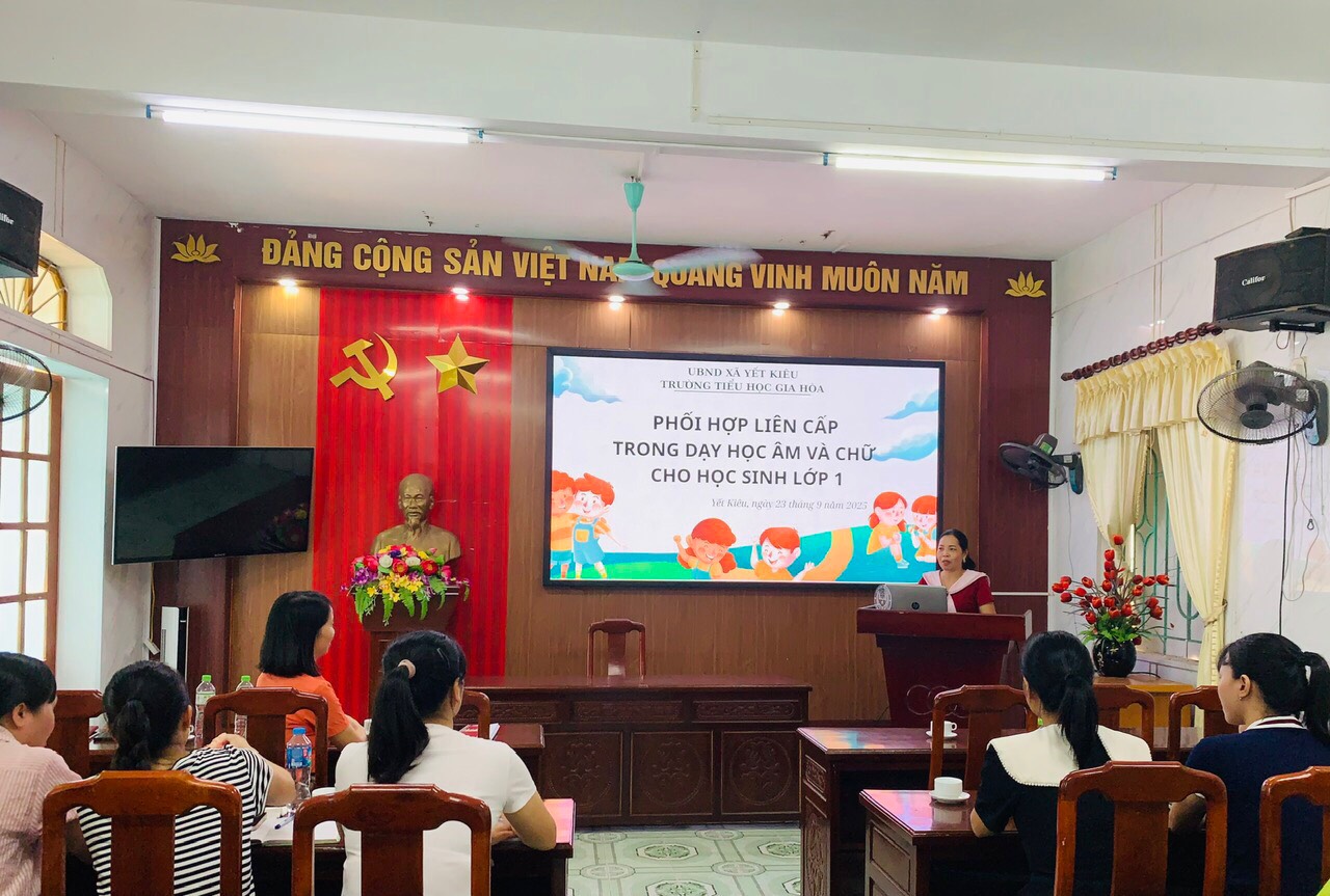 Thực hiện kế hoạch nâng cao chất lượng dạy học và tăng cường sự gắn kết giữa các bậc học, chiều ngày 23/9/2025, Trường Tiểu học Gia Hòa và Trường Mầm non Gia Hòa đã tổ chức buổi sinh hoạt chuyên môn liên cấp với chủ đề “Phối hợp liên cấp trong dạy học âm và chữ cho học sinh lớp 1”.