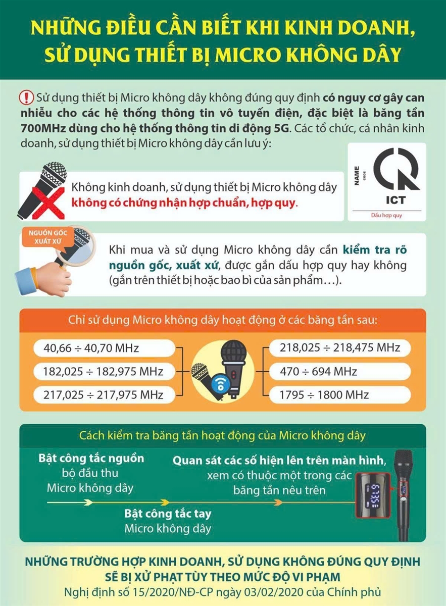 - Không sản xuất, nhập khẩu, mua bán các loại micro không được cấp phép.