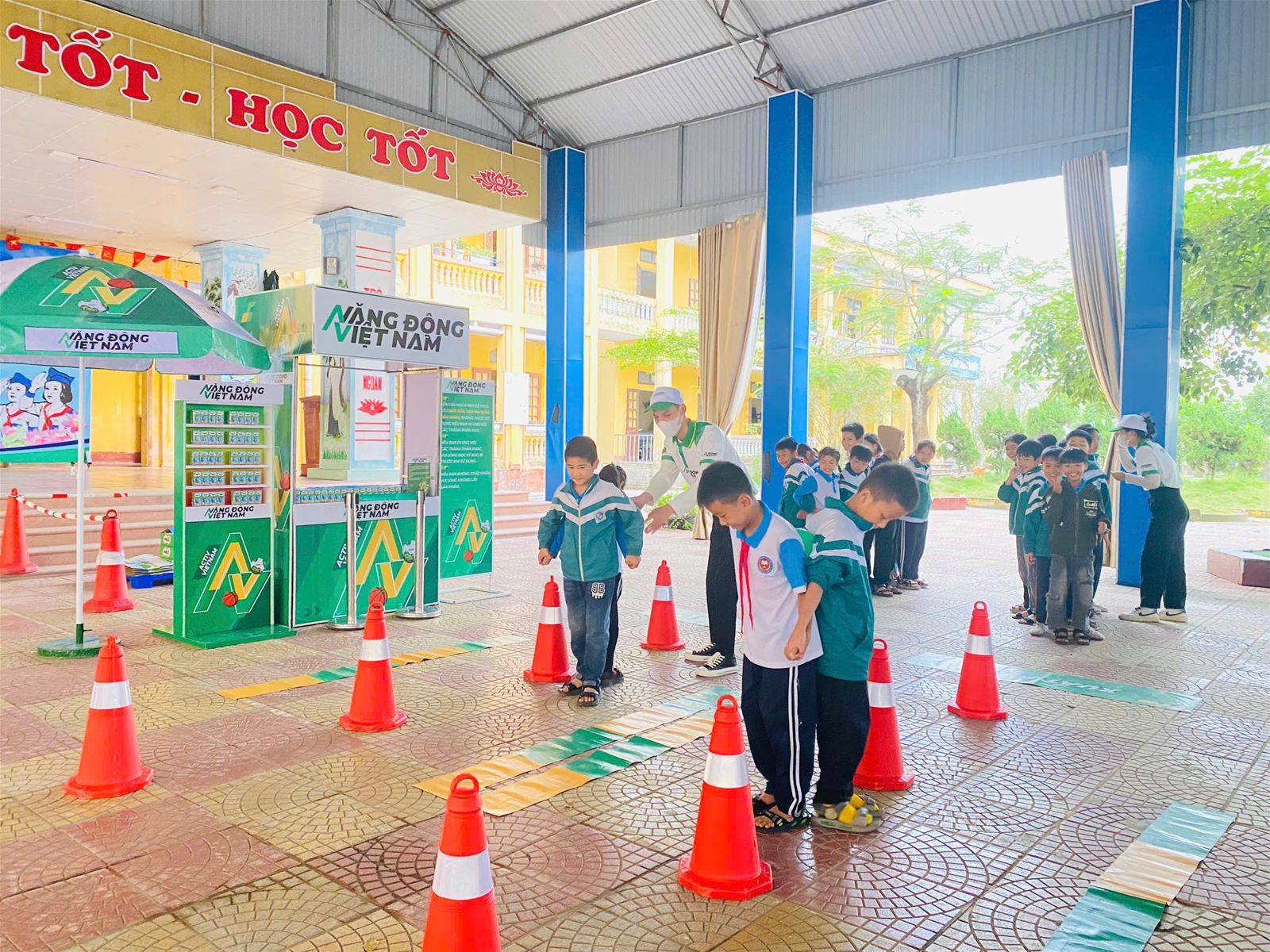 Trong chương trình, học sinh được tham gia các trò chơi thú vị, khởi động toàn trường đầy hào hứng, sôi nổi. Tại buổi trao tặng, đại diện nhà tài trợ đã gửi tặng hàng trăm suất sữa Milo đến học sinh các khối lớp. Không khí buổi trao quà trở nên sôi nổi, ấm áp với những nụ cười rạng rỡ của các em học sinh khi được tận tay nhận những hộp sữa thơm ngon, bổ dưỡng.